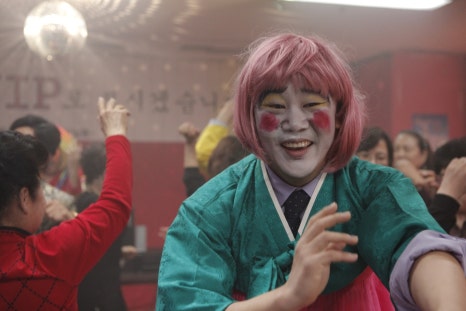 하지만 할머니들과 어울려서 우스꽝스러운 분장을 하고 춤추는 홍보관 직원들 사이 일범이 보입니다.