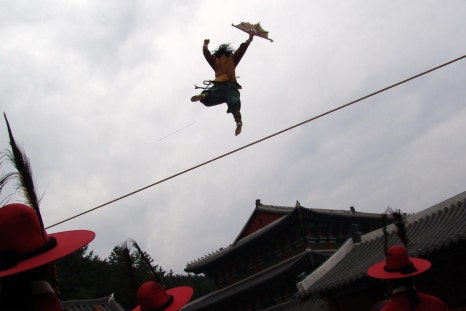 풍자극, 줄타기를 하는 광대 장생과 공길, 광대패의 꼭두가 공길의 외모를 눈여겨 보고 양반들에게 성 상납을 시켜 밥을 벌자 장생이 공길을 데리고 도망을 칩니다. 그런데 도망을 치다가 공길은 장생을 구하려고 꼭두를 죽이고 충격을 받는데 장생은 맹인 연극을 하면서 공길을 달랩니다. 장생은 한양에 가서 큰 판을 벌이자면서 공길과 한양으로 갑니다. 이들은 저잣거리의 광대판에 난입을 해서 한양의 광대 육갑, 칠득, 팔복의 코를 누르고 그들과 합세해 왕, 후궁을 가지고 노는 광대극을 합니다. 이를 보던 환관 김처선에게 들켜 왕을 모욕한 죄로 의금부에 잡혀가 매질을 당합니다.