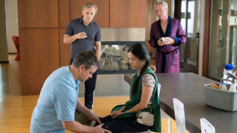 생일 파티에 참석해서 폴은 데이브에게 다운사이징을 한 것을 자기는 후회한다고 말합니다. 폴은 여자친구와도 헤어지고 이웃인 두샨이 주최한 파티에 참석합니다. 다음날 아침 폴은 두샨의 집에서 청소부로 일하는 한 명이 바로 베트남 정치 운동가 녹 란 트란이라는 걸 알아차립니다.