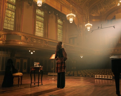 마리아는 마침내 퐁텐블로 박사를 만나기로 하고 첫 번째 진료에서는 마약 복용하는 것에 대해 거짓말을 합니다. 두 번째 진료에서 퐁테블로는 페루치오가 준 진단서를 보고 더 이상 노래를 부를 수 없을지도 모른다면서 건강 상태가 악화되었다 밝힙니다. 그 후 마리아는 제프리 테이트와의 마지막 세션에 참석해 자기 목소리를 녹음하려고 녹음기를 가져옵니다. 전성기 시절 목소리를 따라갈 수 없을 정도로 목소리가 나빠진 걸 알게 된 마리아는 슬픔에 잠깁니다. 타블로이드 기자가 이 세션을 염탐하고 그녀에게 무례한 질문을 하자 페루치오가 그를 밀어냅니다.